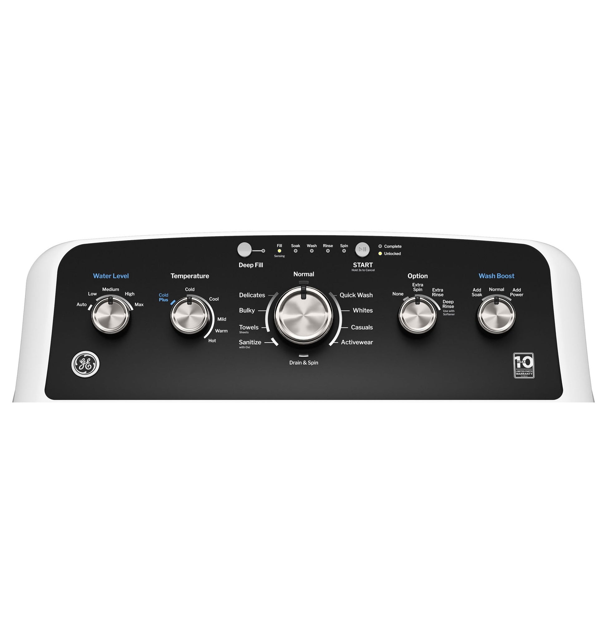 GE 4.5 Cubic Foot Top Load Washer with Wash Boost, 10 Wash Cycles, Water Level Control, True Dual-Action Agitator, Quick/Express Cycle, Color: White