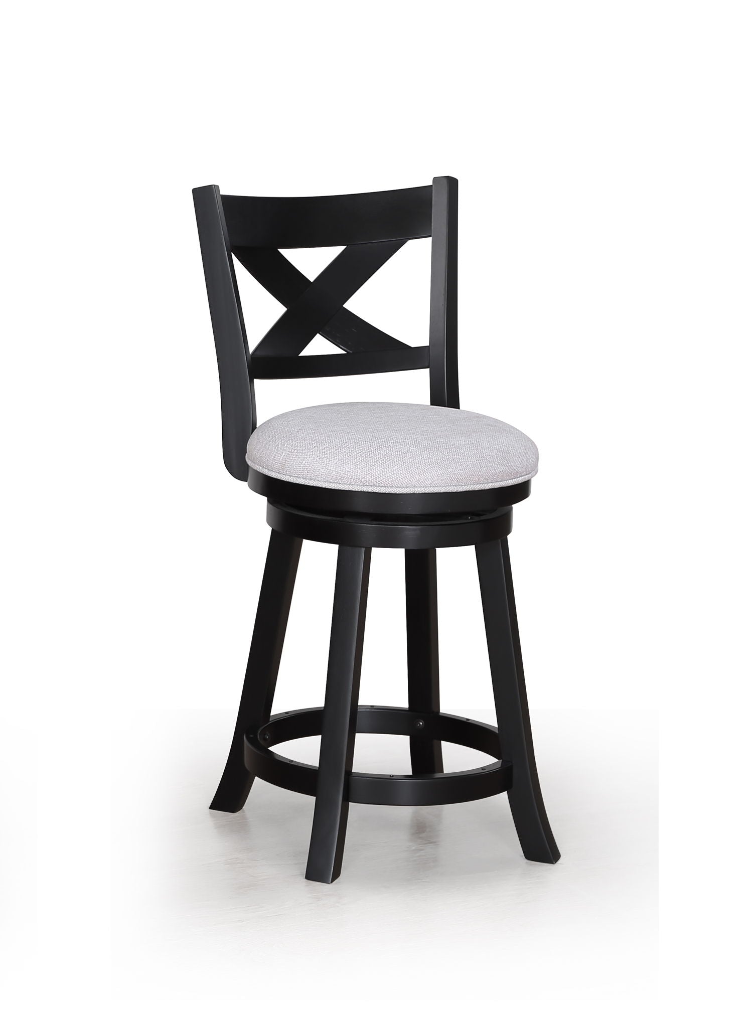Introducing a touch of rustic charm mixed with urban sophistication, these counter stools are a perfect blend of style and functionality. The rich, deep wood finish accentuates the intricate cross-back design, adding a visually captivating element. Paired with soft dove gray upholstery, these stools ensure both comfort and elegance.