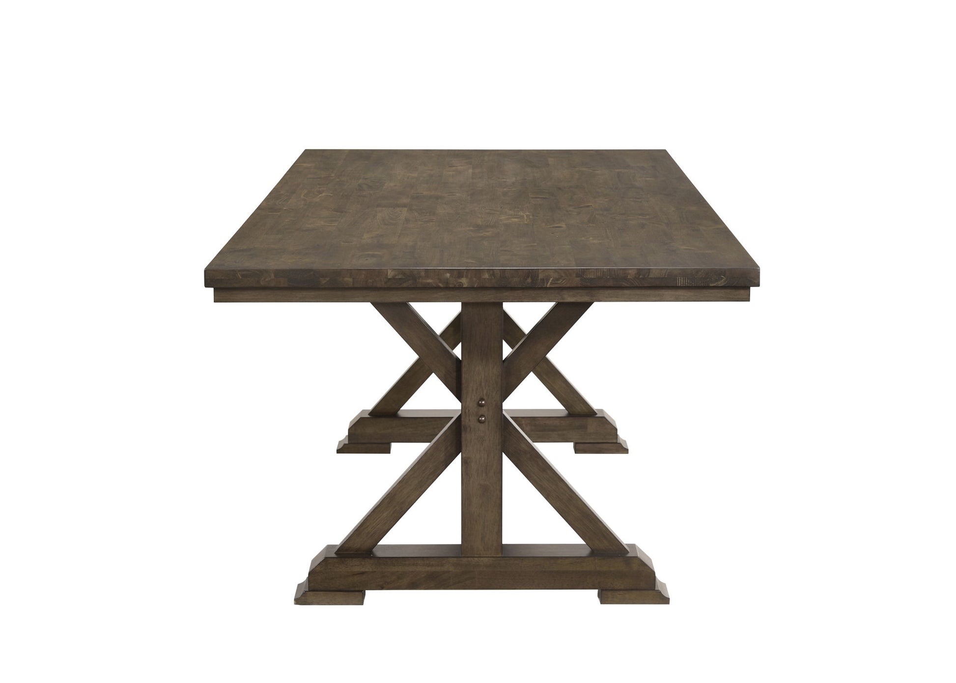 Bring rustic elegance to your dining space with this stunning farmhouse-inspired dining set, designed for both style and functionality. The beautifully crafted table features a robust trestle base, adding character and durability, while its rich wood finish enhances the natural charm of your home. The matching chairs and bench showcase a sleek slat-back design with plush upholstered seating, ensuring comfort for every gathering. Perfect for casual family meals or formal entertaining, this collection effortlessly blends rustic warmth with contemporary sophistication, making it a timeless centerpiece for any dining room.