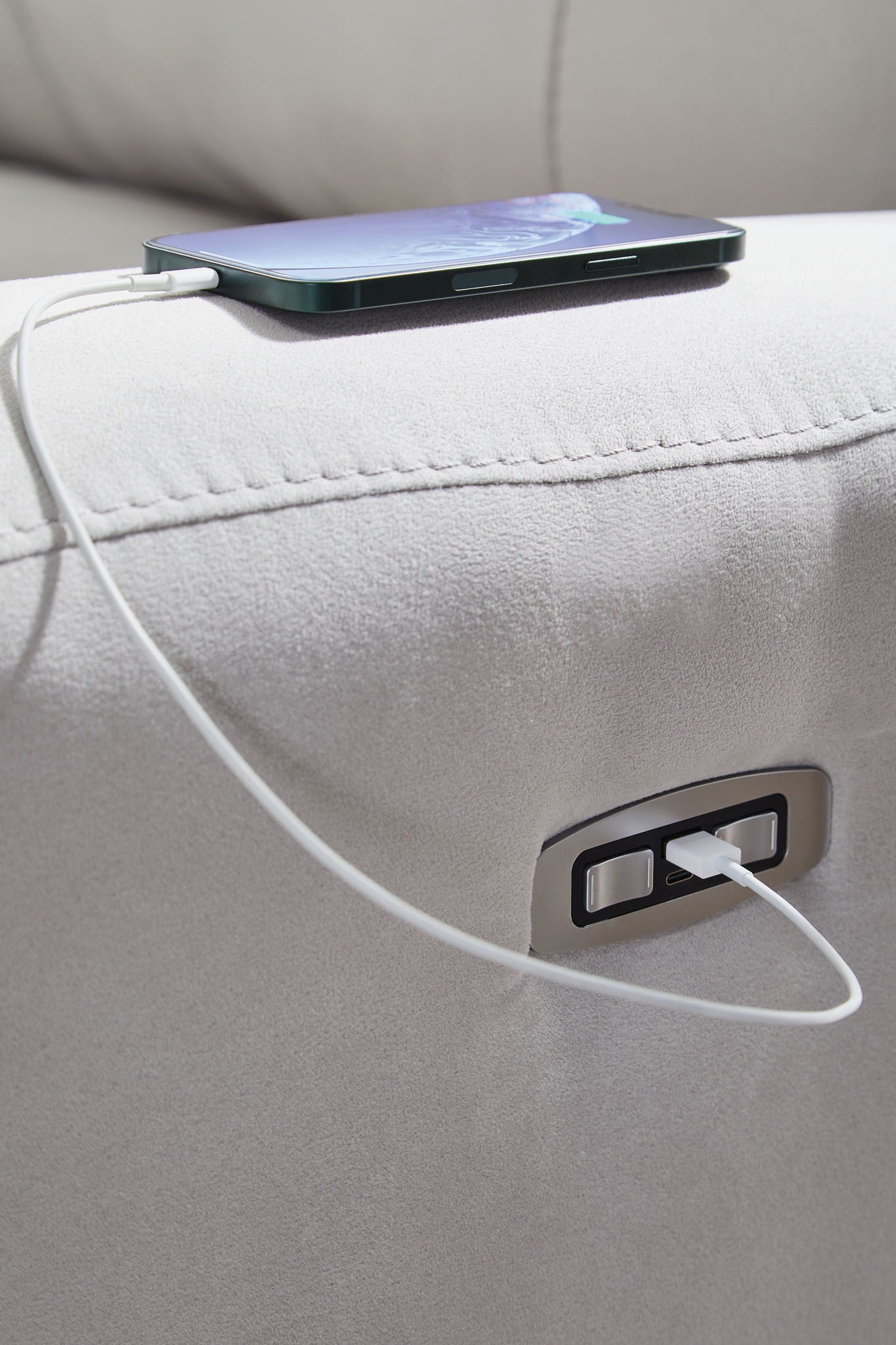 Social Pointe - 3-Piece Power Reclining Sectional - Pearl / Ash