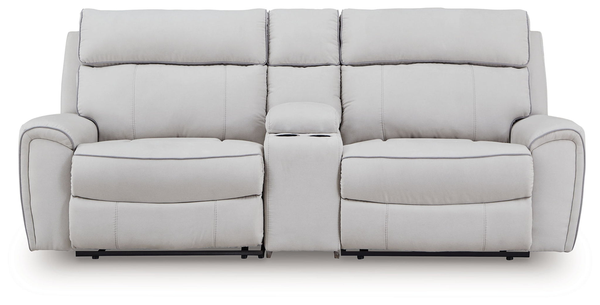 Social Pointe - 3-Piece Power Reclining Sectional With Storage Console - Pearl / Ash